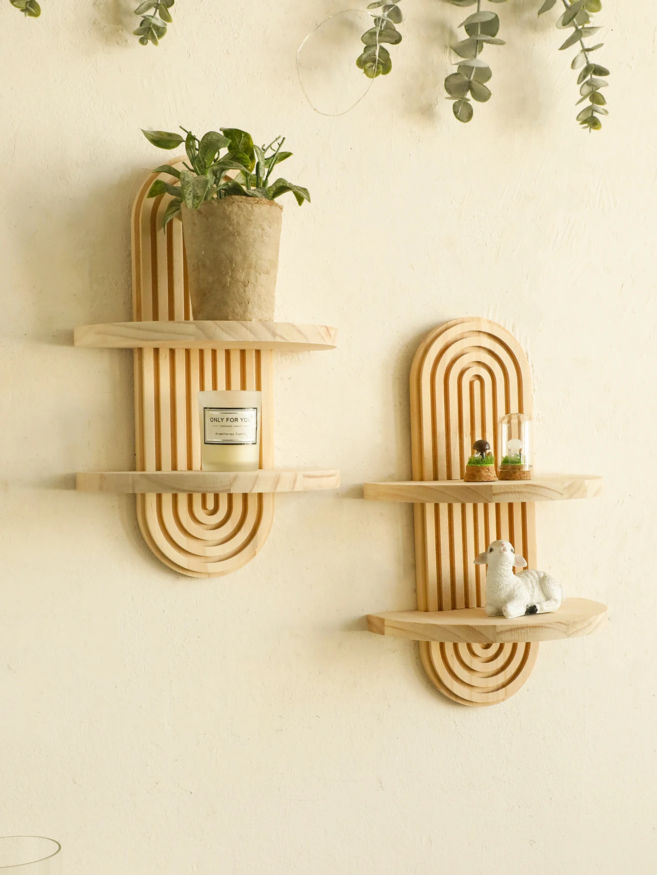 The boho style wooden wall shelves add a touch of ethnic charm to your modern home decor, creating a unique visual appeal.