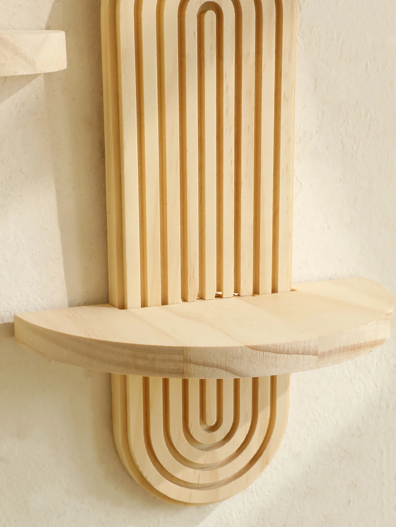 1Pc Boho Style Wooden Wall Shelves – Geometric Wall Mounted Shelves, Natural Wood Finish, Modern Home Decor, Plant Decorative