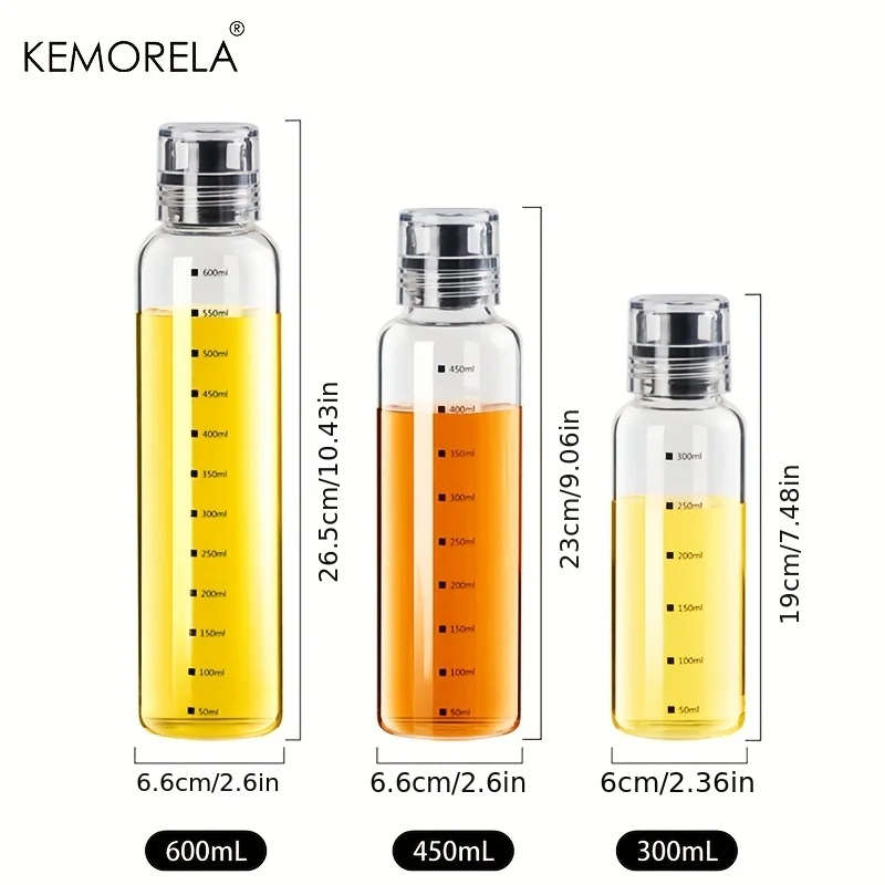 1PCS BBQ Cooking Oil Bottle With Scale Sealing Glass Oil Can For Air Fryer Sauce Vinegar Cooking Kitchen Supplies 300/450/600ML