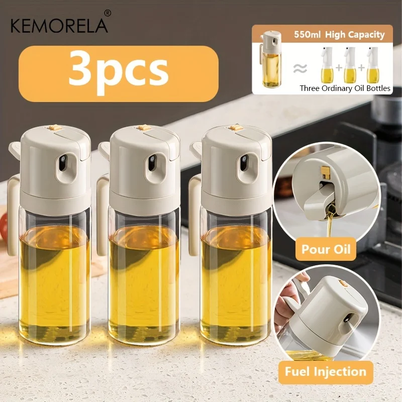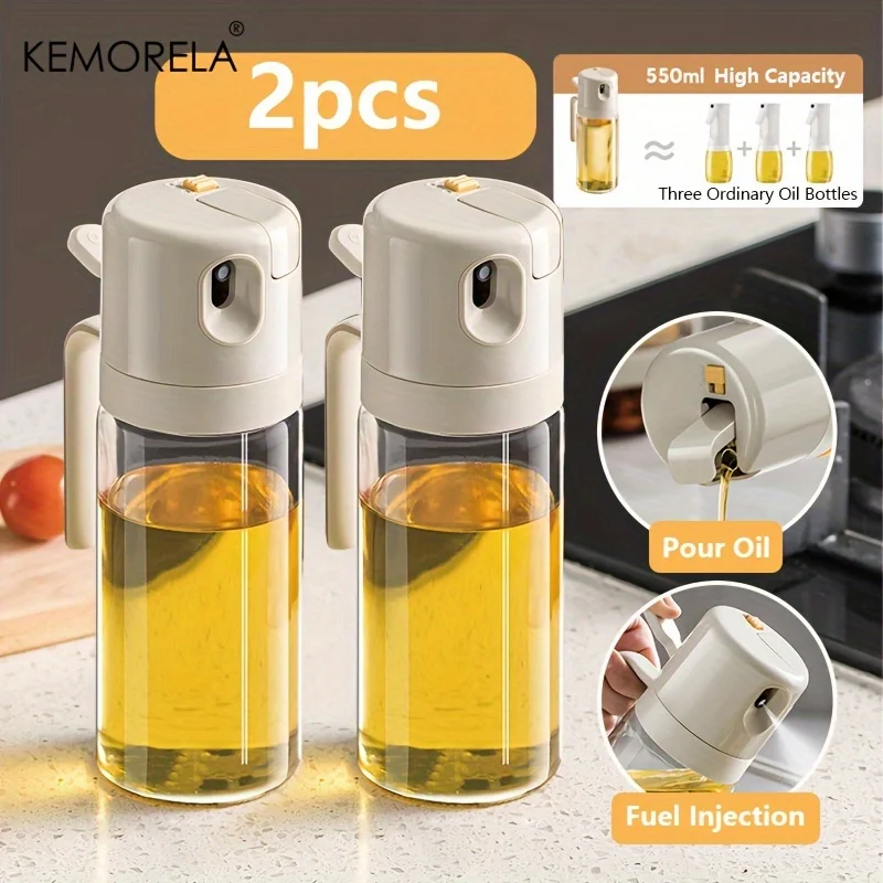 550ML Oil Sprayer Bottle 1/2/3PCS BBQ Cooking 2 in 1 Oil Dispenser Olive Oil Pourers Sprayer Kitchen Baking Oil Vinegar Bottle