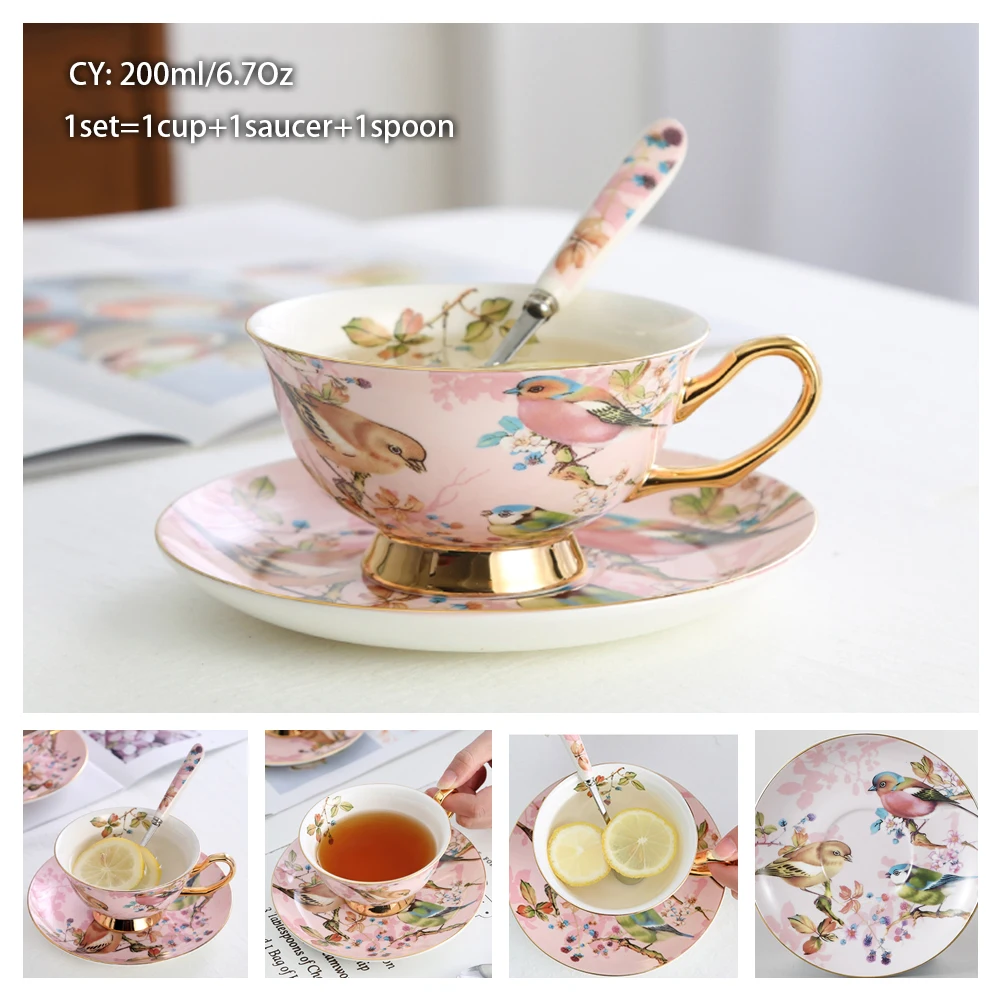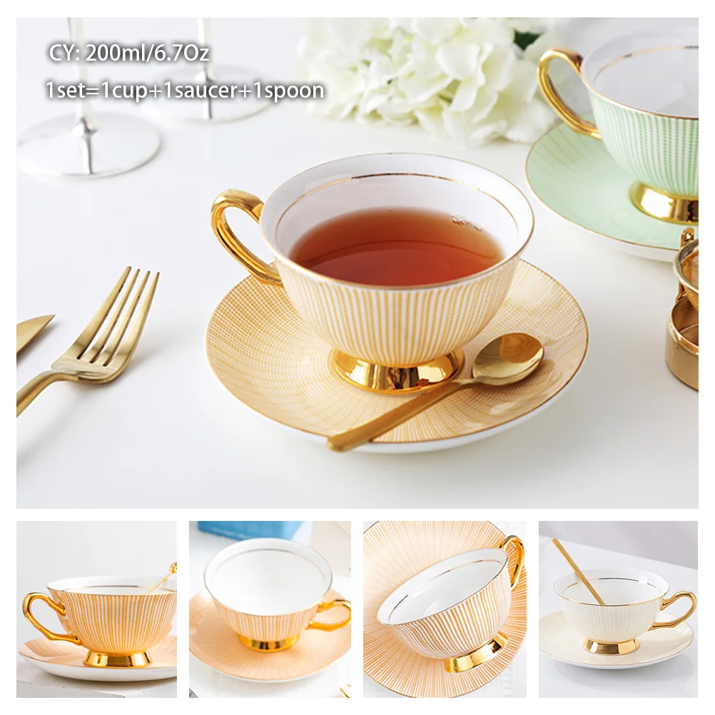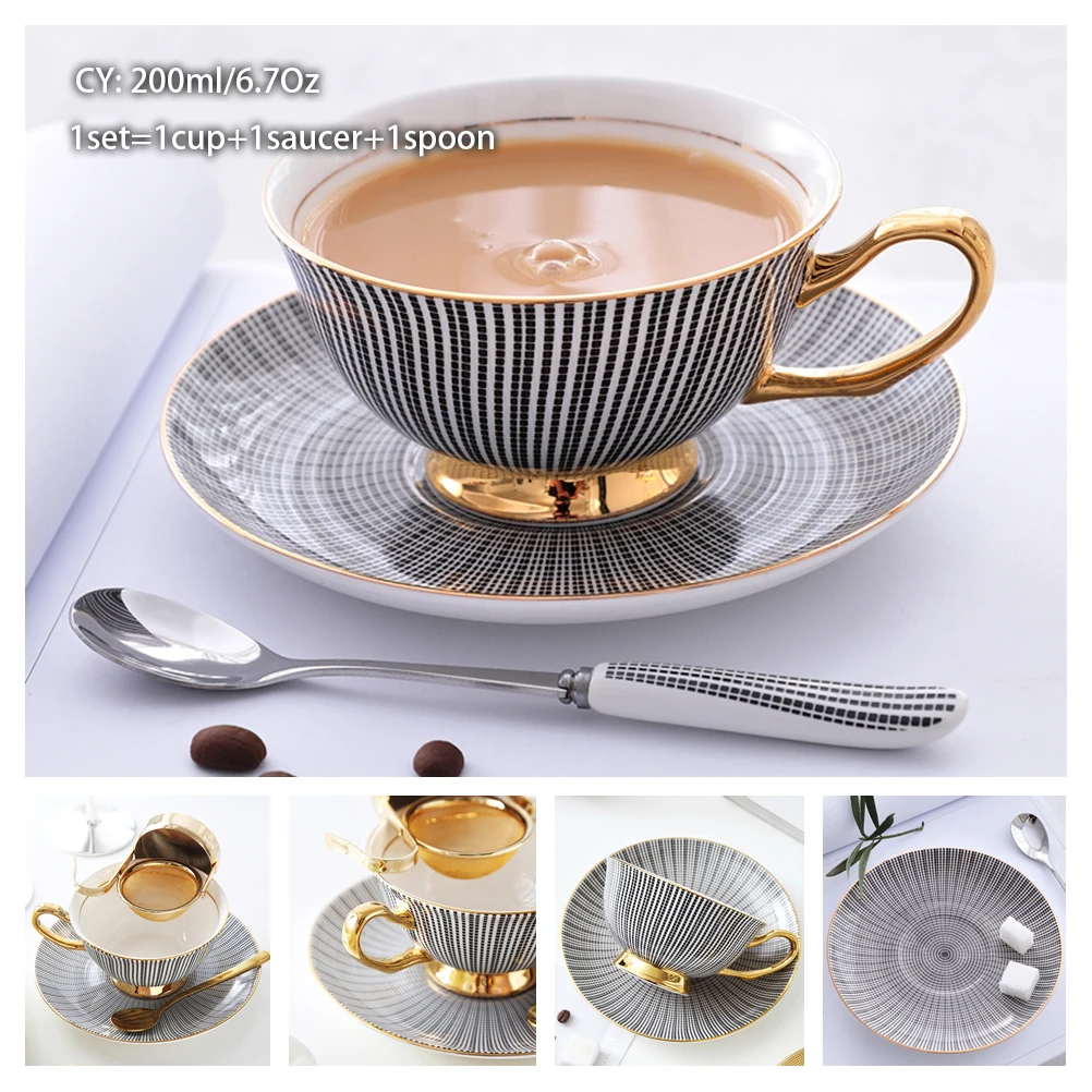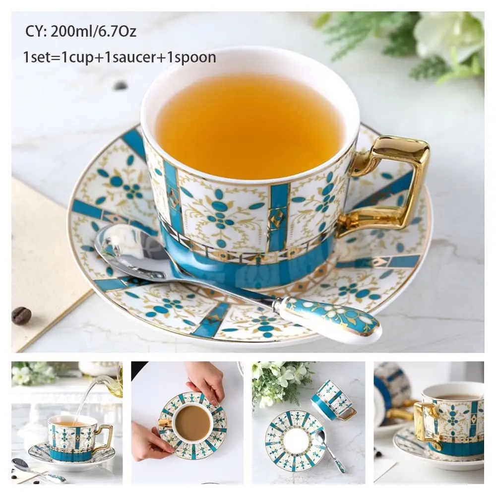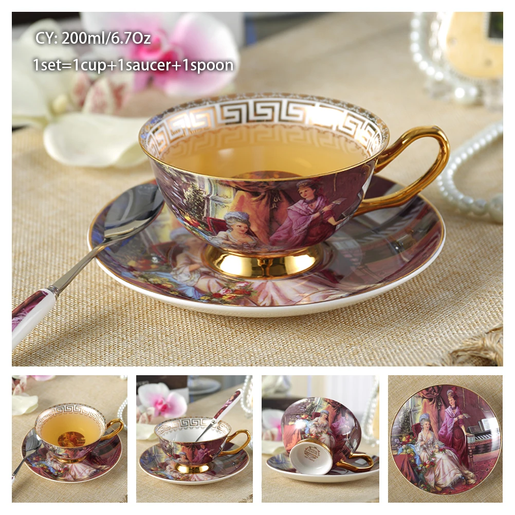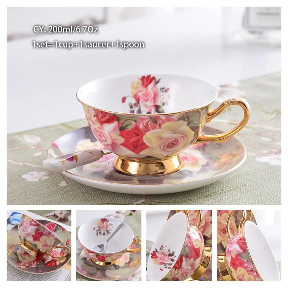 Coffee cup set: 1set = 1cup + 1saucer + 1spoonCapacity: 200ml (approx)Material: Top-grade bone chinaCraft: On-glazedPacking: Thicken foam packageShipping date: Within 2 days since paymentUse: Drinkware or Decent gift