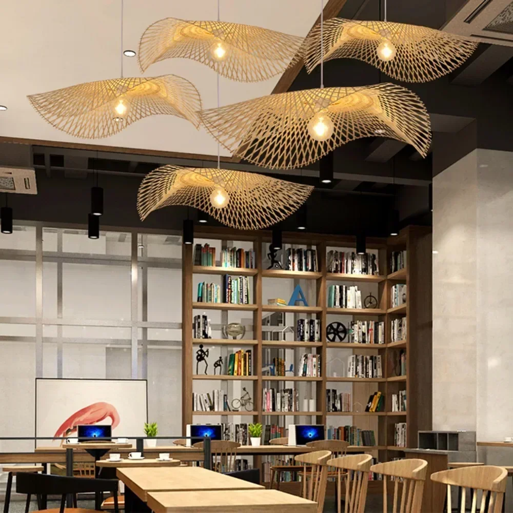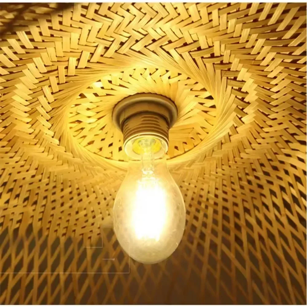Rattan Pendant Lighting Fixture Japanese Bamboo Chandelier Wicker Lamp Shades for Living Room Bedroom Restaurant Cafe Teahouse