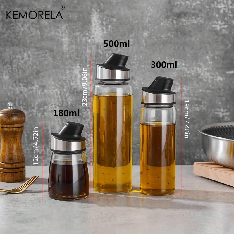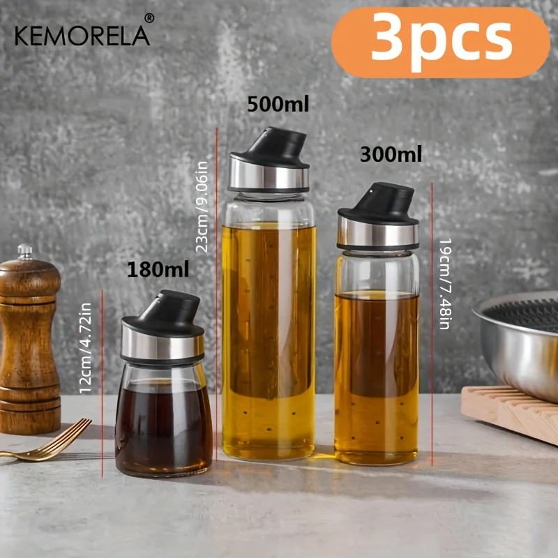 KEMORELA 1/3PCS Oil Bottle Olive Oil Glass lecythus Dispenser Drip-Free Automatic Opening And Closing Seasoning Bottle Bottle