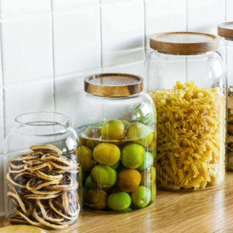 KEMORELA 3L Kitchen Glass Jars With Acacia Airtight Lid For Flour And Sugar Baby Food Container Heat Resistant Transparent Glass