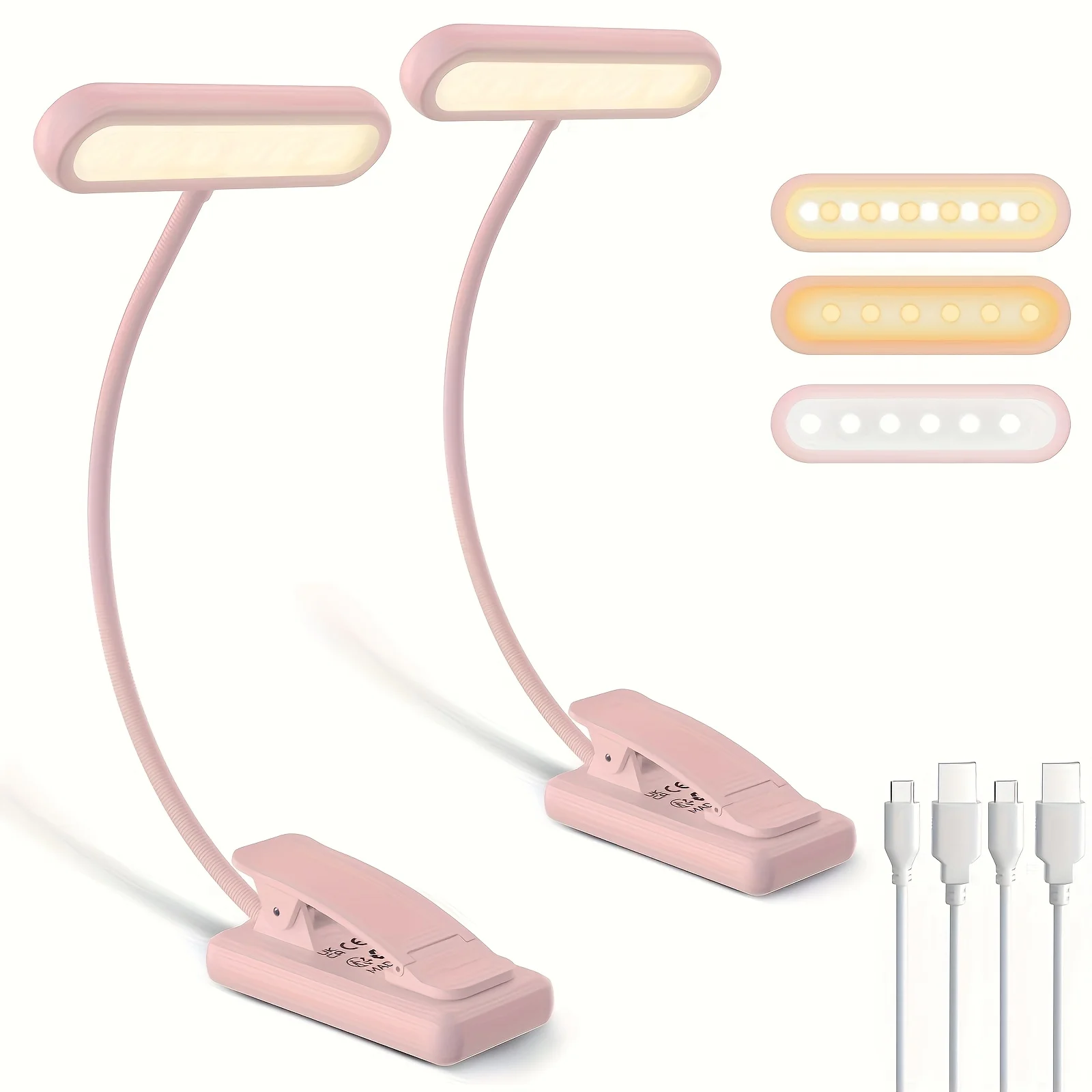 LED Book Light Reading Light Eye Caring Clip-on USB Rechargeable Dimmable Light Lamp Adjustable Flexible Night Reading Lamp