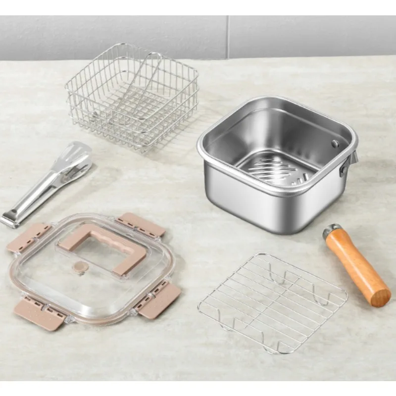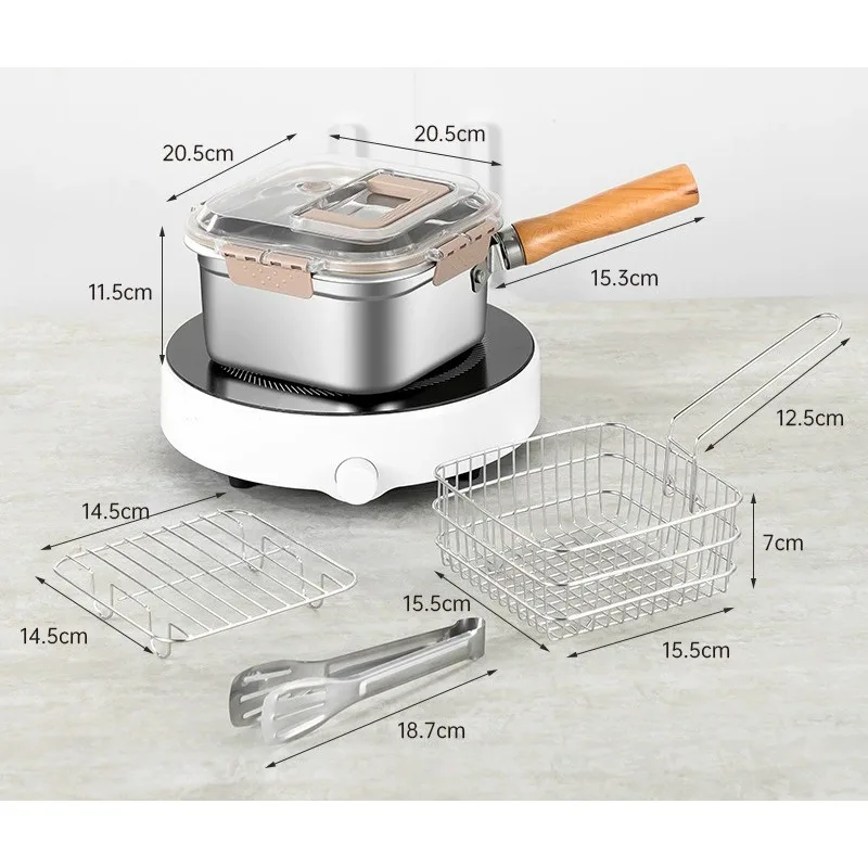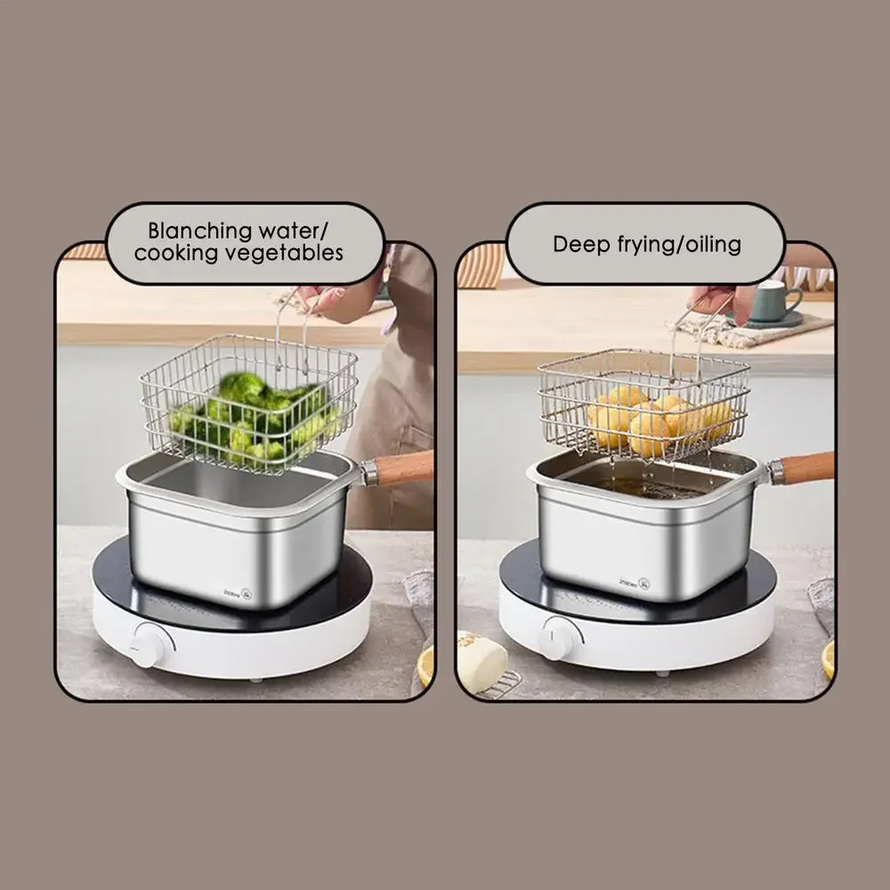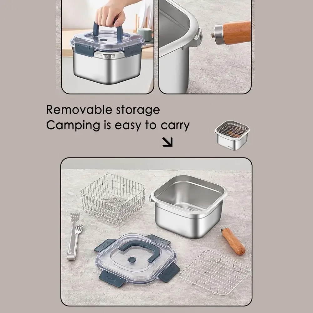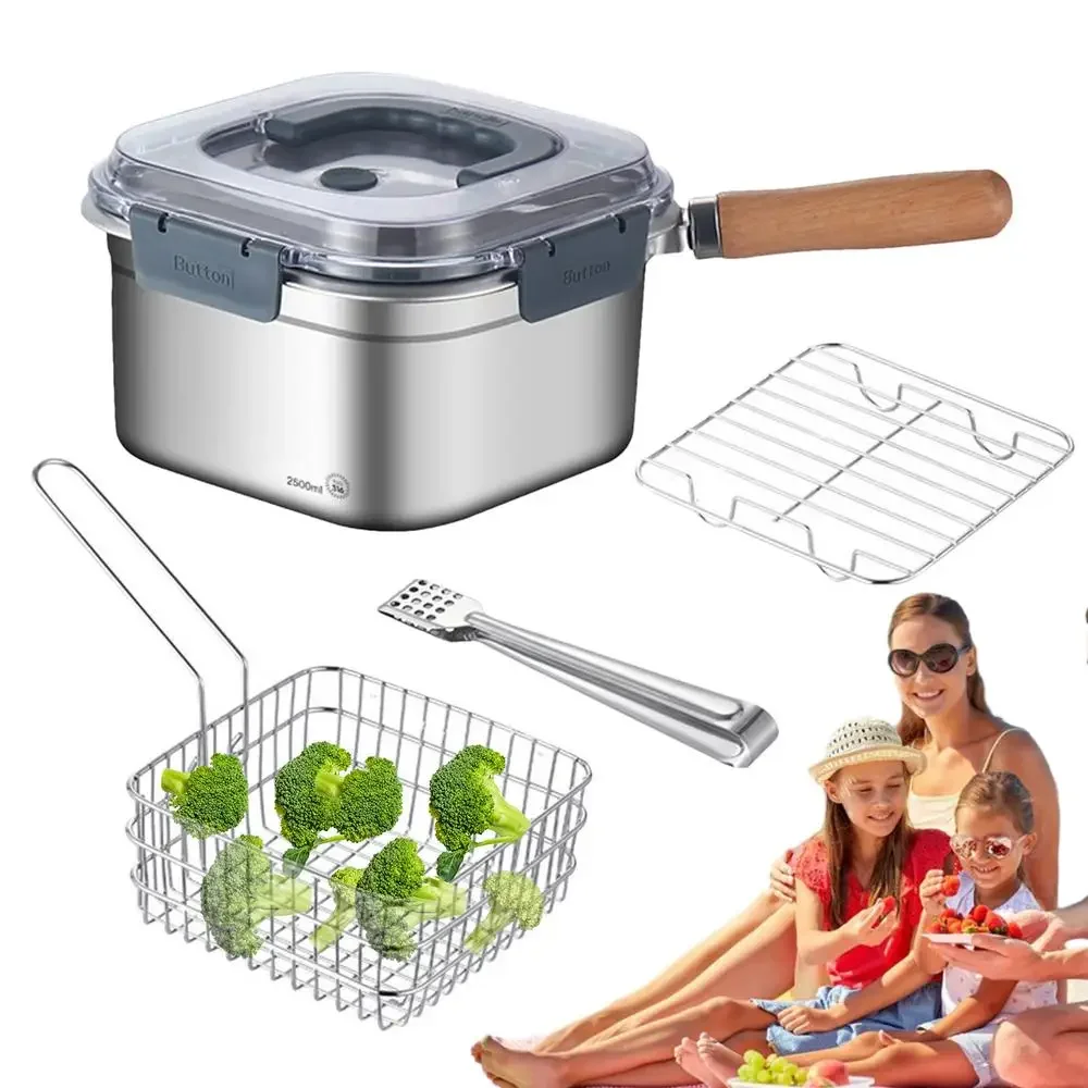 Multifunctional Fry Pan Detachable Camping Cookware Set Stainless Steel Camping Cooking Equipment Deep Fryer Pot