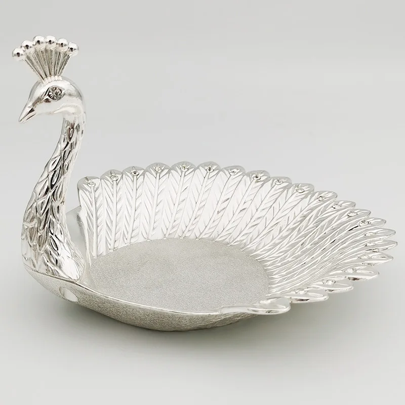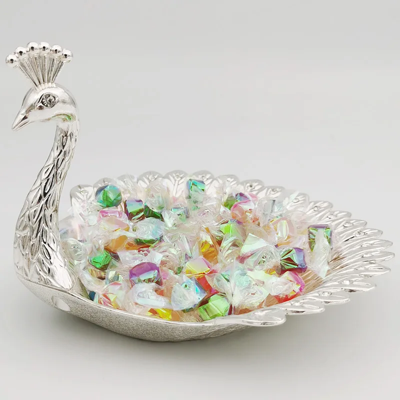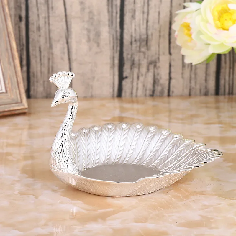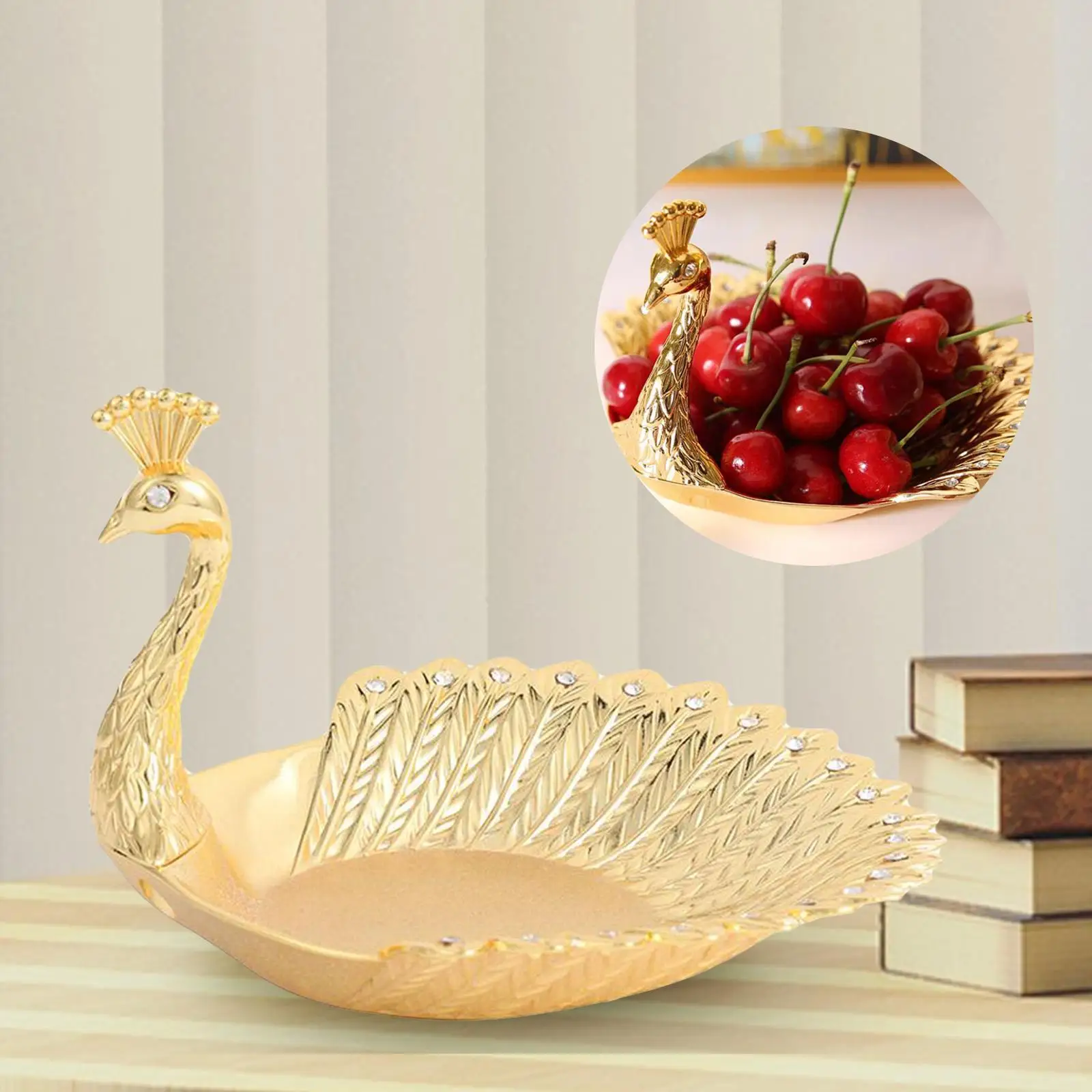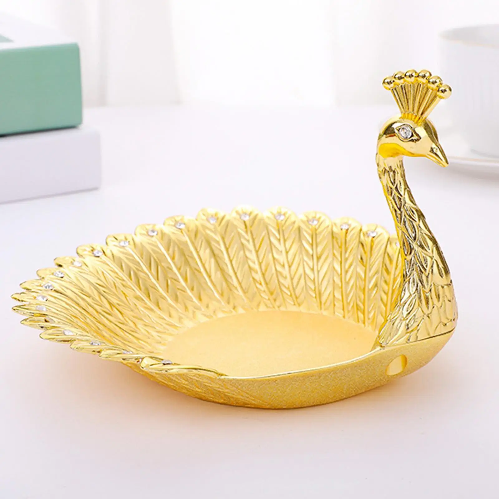 Pretty Gold Peacock Fruit Plate Luxury Zinc Alloy Tray Delicate Storage Plate for Candy Trinket Jewelry Snack Serving Home Decor