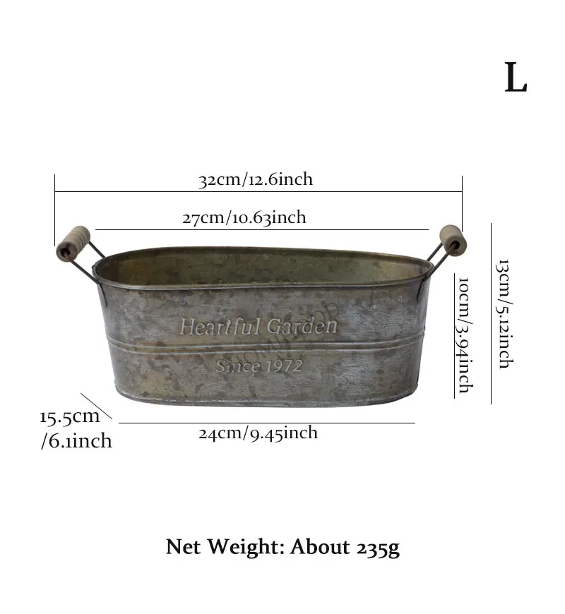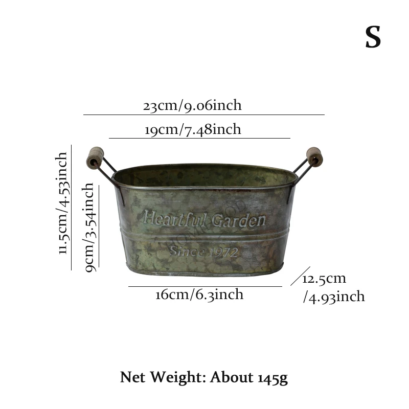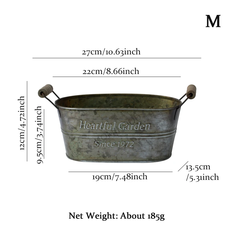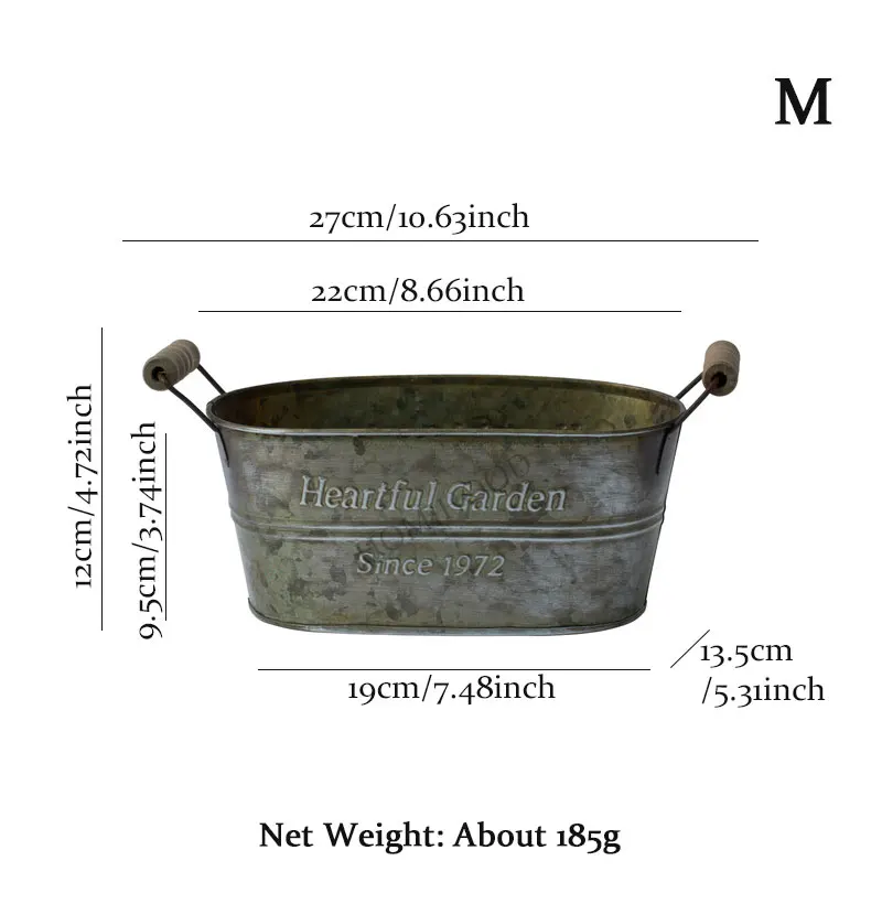 Specification:Product: Iron Handle BucketMaterial: IronType: S, M, L SizeSize(Height*Diameter):S 19*12.5*9cm / 7.48*4.93*3.54inchM 22*13.5*9.5cm/8.66*5.3*3.74inchL 27*15.5*10cm/10.63*6.1*3.94inch